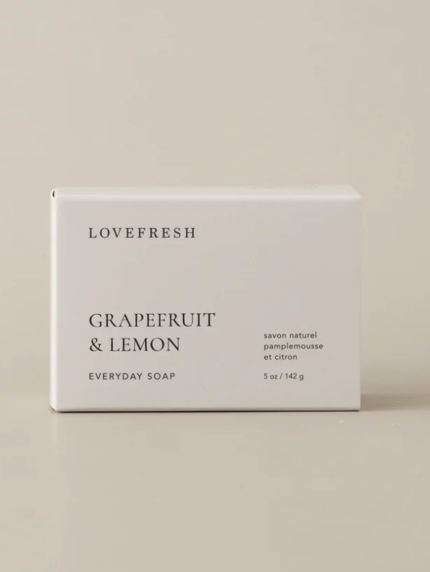 LoveFresh Everyday Bar Soap offers a gentle, refreshing cleanse with every use. Crafted to suit all skin types, it nourishes and softens your skin while removing impurities. Its mild formula keeps your skin feeling fresh and hydrated daily, making it the perfect choice for your everyday skincare routine. Elevate your cleansing experience with this everyday soap and enjoy soft, radiant skin every day.