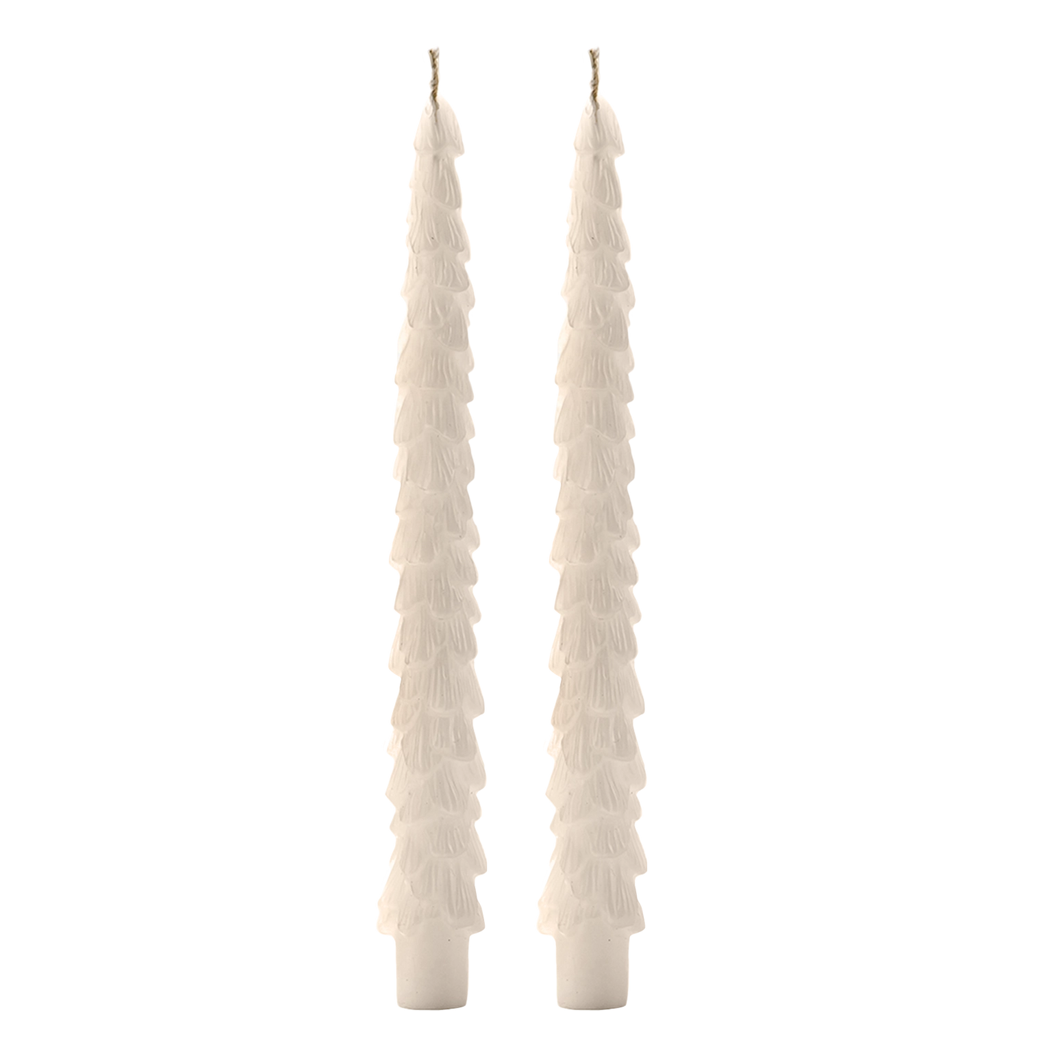 Elevate your holiday décor with this set of two cream-colored taper candles shaped like classic Christmas trees. These non-toxic candles add a warm, festive glow to dining tables, mantels, or entryways, enhancing any seasonal display. With over 6 hours of burn time, they offer both elegance and lasting charm for your holiday celebrations.