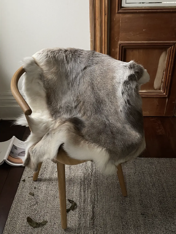 This Scandinavian Reindeer hide showcases the natural beauty of soft, luxurious fur with subtle variations in tone and texture that tell a story of the Arctic landscape. Perfect for draping over furniture, layering on beds, or creating a striking focal point on any floor, this versatile piece adds warmth and sophistication to modern and traditional interiors alike.