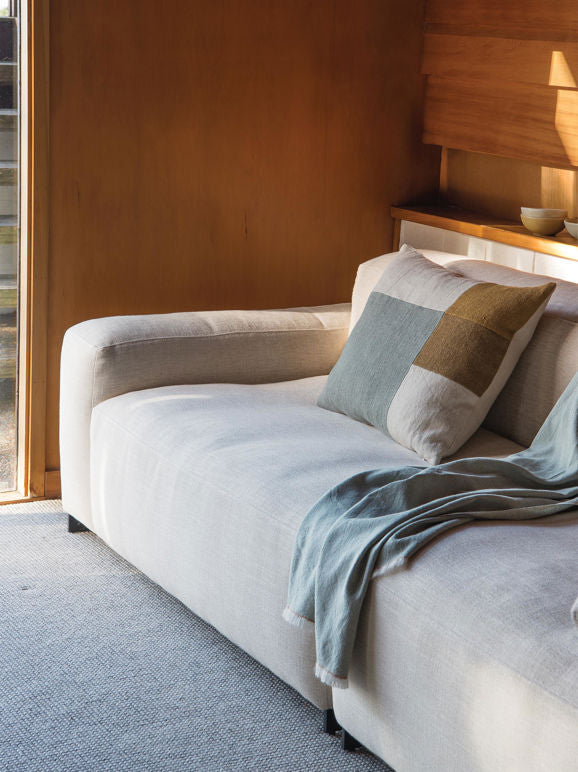 The Heath Throw Pillow showcases a striking patchwork design that plays with geometry and color, adding a bold artistic touch to your living space. Made from a heavyweight blend of jute, linen, and cotton, it offers a natural, textured feel that enhances comfort and style. Thoughtfully designed in New Zealand by our in-house textile experts Imogen Tunnicliffe and Sophie Clapson, this pillow brings both craftsmanship and character to your home.