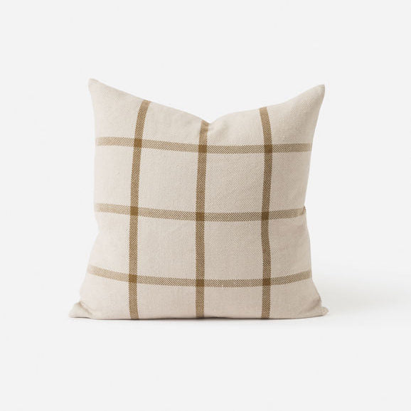 Elevate your living space with the Bento Woven Throw Pillow, showcasing a bold, masculine large-scale grid pattern crafted from a timeless twill weave. This cushion cover combines modern style with durable construction, adding both visual interest and lasting comfort to any room. Perfect for those seeking a sophisticated yet contemporary accent piece.