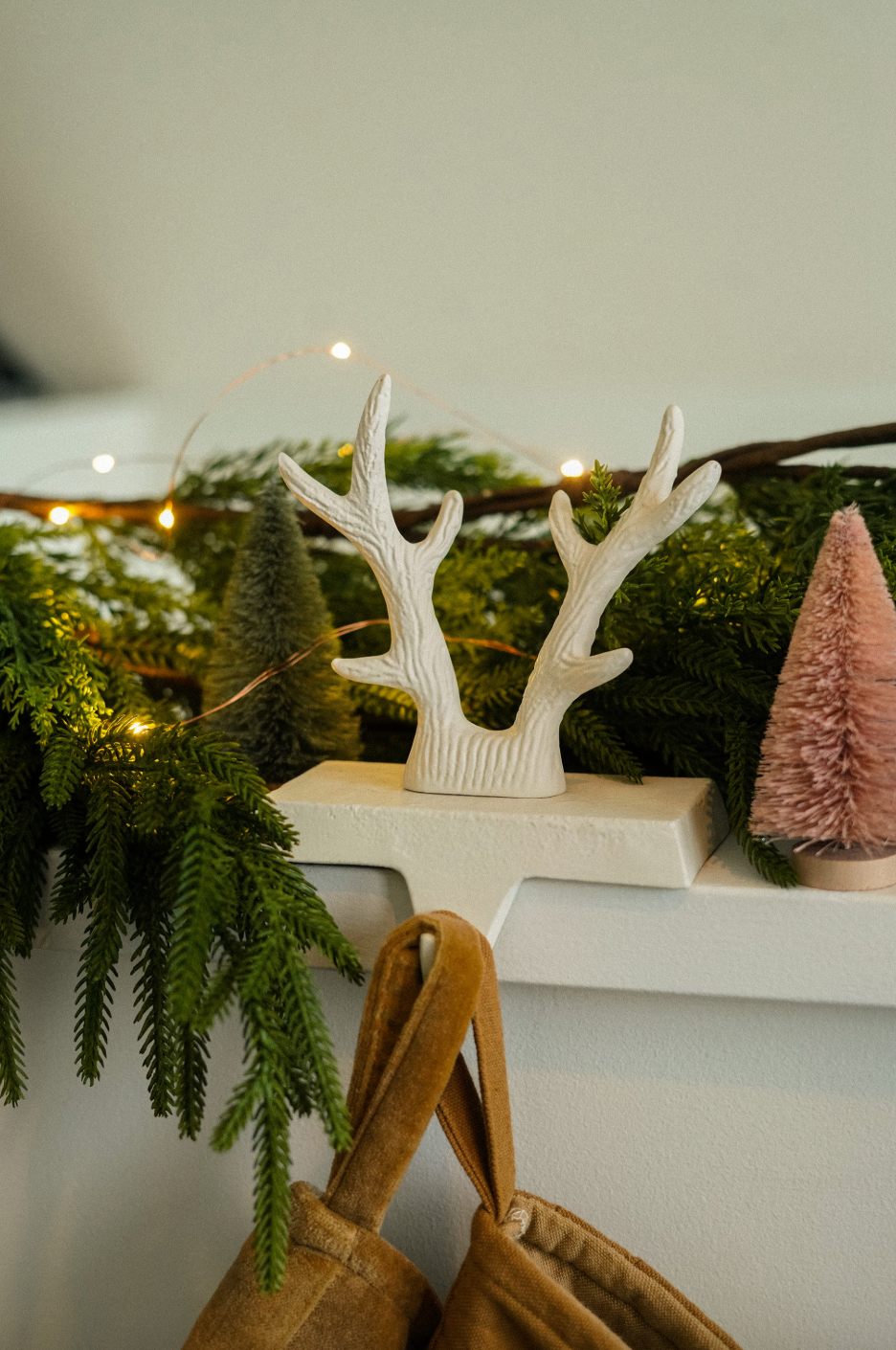 Elevate your holiday décor with the Antler Stocking Holder in white. Its elegant design provides a sturdy and stylish way to hang your stockings, blending rustic charm with a clean, modern finish. Perfect for adding a festive touch to any mantle, this stocking holder enhances your space while keeping your Christmas essentials securely in place. Make your holiday display effortlessly beautiful and inviting.