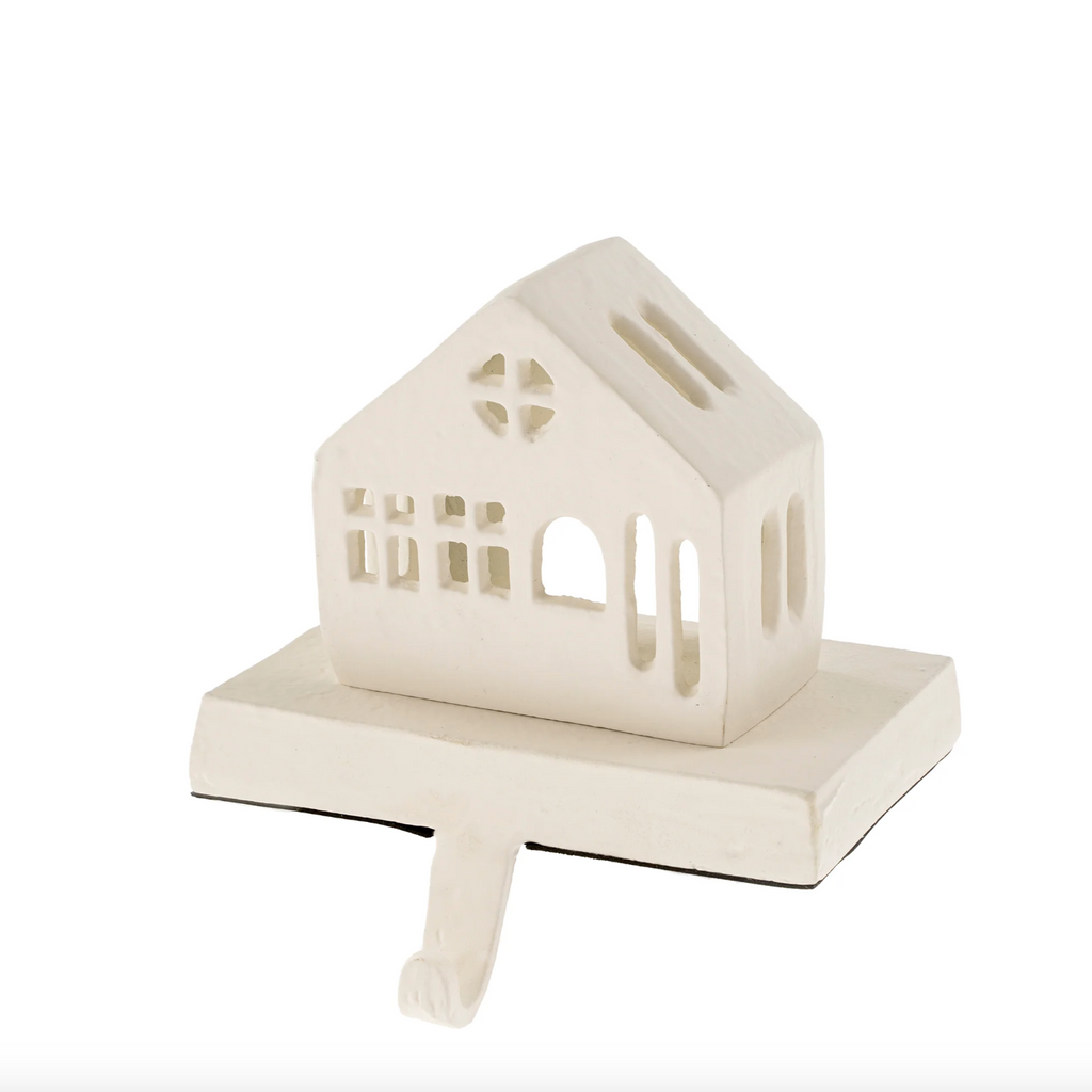 Add a charming touch to your mantel with the Chalet Stocking Holder. Crafted from durable cast aluminum and iron, it features a winter-white powder coat that blends seamlessly with any holiday decor. Inspired by nature, this stocking holder is both sturdy and elegant, ready to securely hold all your festive treats from Santa. Elevate your holiday tradition with a stylish accent that combines strength and seasonal charm.