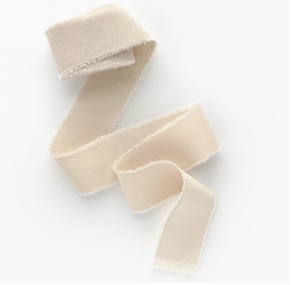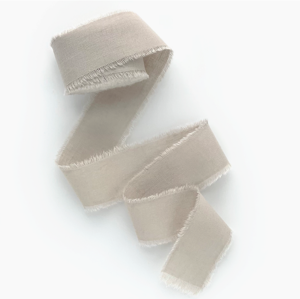 Beige cotton hand dyed frayed edges classic ribbon, 5 yards per roll. All ribbons ready to ship in 1-2 b-days, individual packaging for each roll