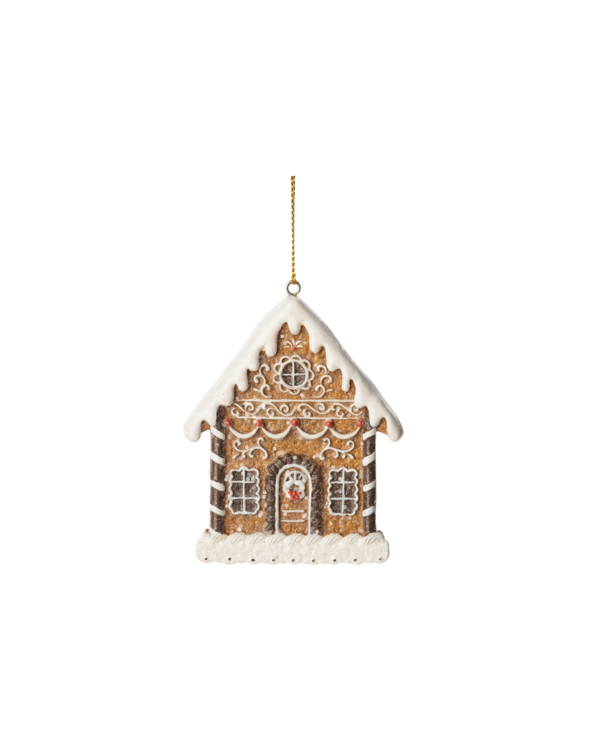 This gingerbread house ornament is the perfect addition to your holiday decor. Crafted with intricate details, this cute ornament adds a touch of festive charm to your Christmas tree. Made with gingerbread, it will fill your home with the sweet scent of the holiday season.
