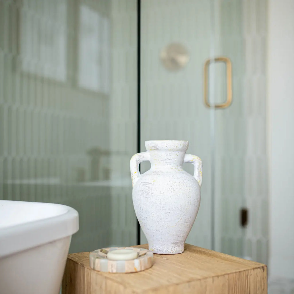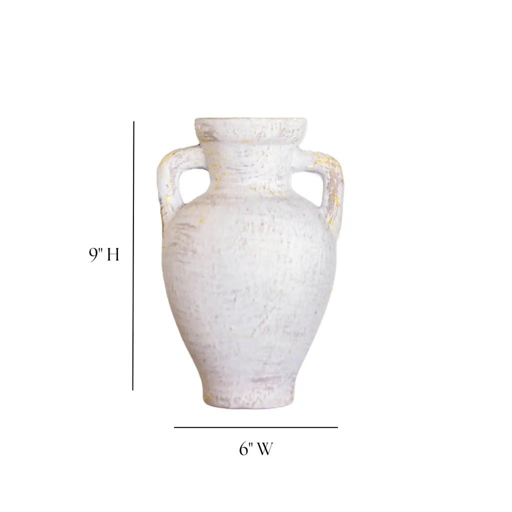 Lesbos White Urn Vase with Handles
