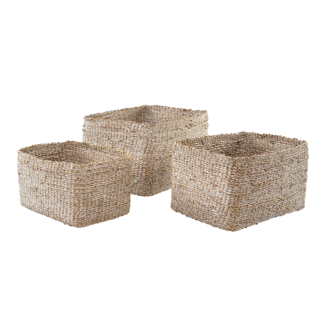 Elevate your home organization with the Shorebreak Baskets. Crafted from natural seagrass, these baskets combine durability with coastal charm. Perfect for tidying up any space, their varying sizes offer versatile storage solutions while adding a warm, textured accent to your decor. Embrace effortless style and functionality with this essential set.