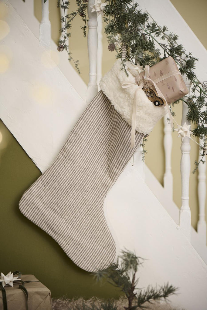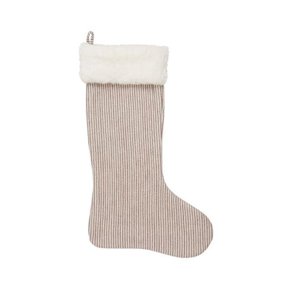 This Striped Cotton Stocking is made of soft cotton material and features a fuzzy end for added comfort. Perfect for the holiday season, this stocking adds a cozy touch to any Christmas celebration. With its classic striped design, it is the ideal addition to your holiday decor.