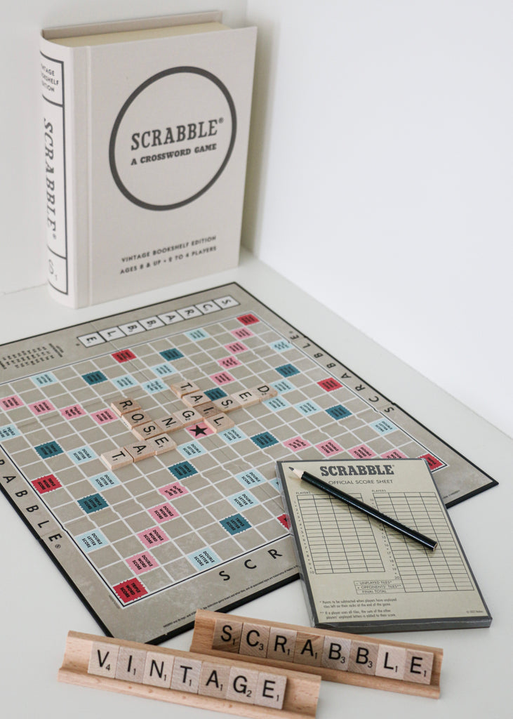This Vintage Bookshelf Edition of SCRABBLE was inspired by the graphics of the original 1948 game. The designers have created an elegant storage method that allows you to store this game and its components on your bookshelf among the classics. The addition of premium game components create a classic to be enjoyed for generations.