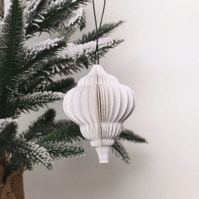This white Paper Diamond Ornament adds a touch of elegance to your holiday decor. Made of high-quality paper, this ornament is a unique addition to your Christmas tree. Its delicate design and neutral color make it a versatile choice for any festive theme.