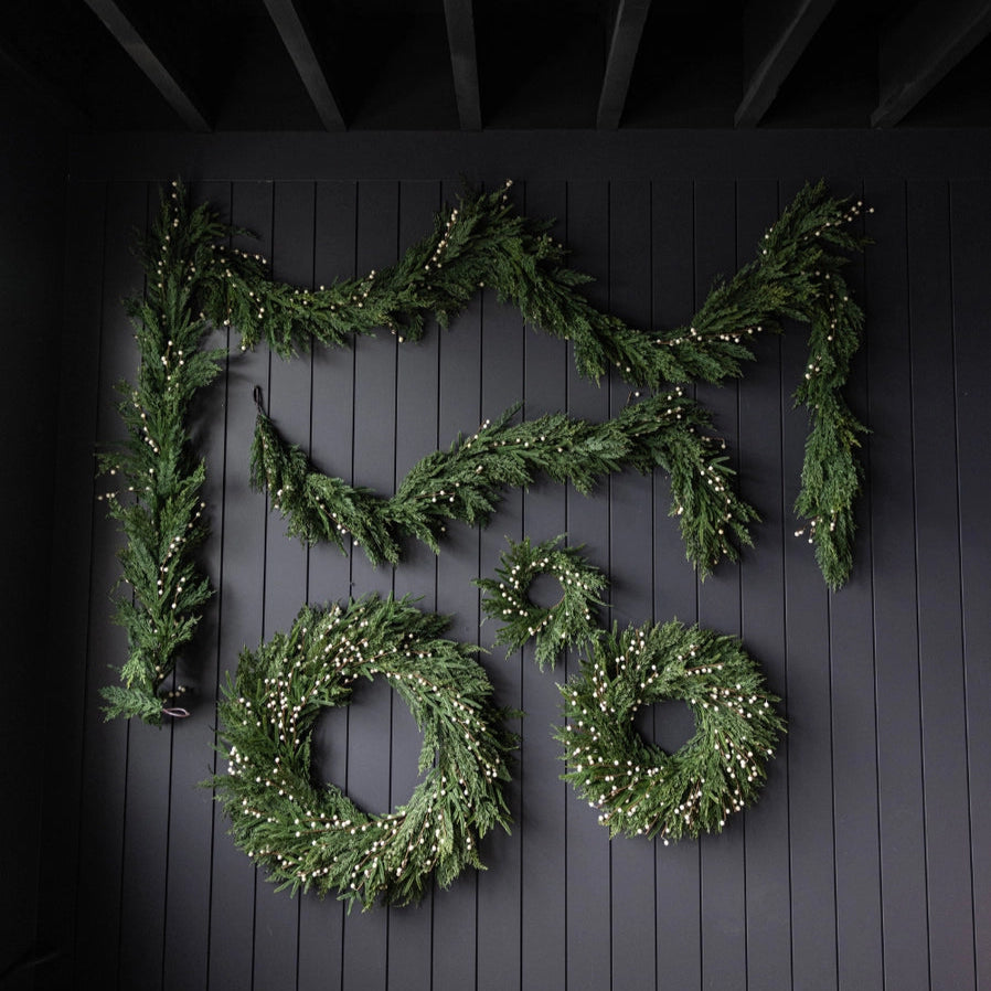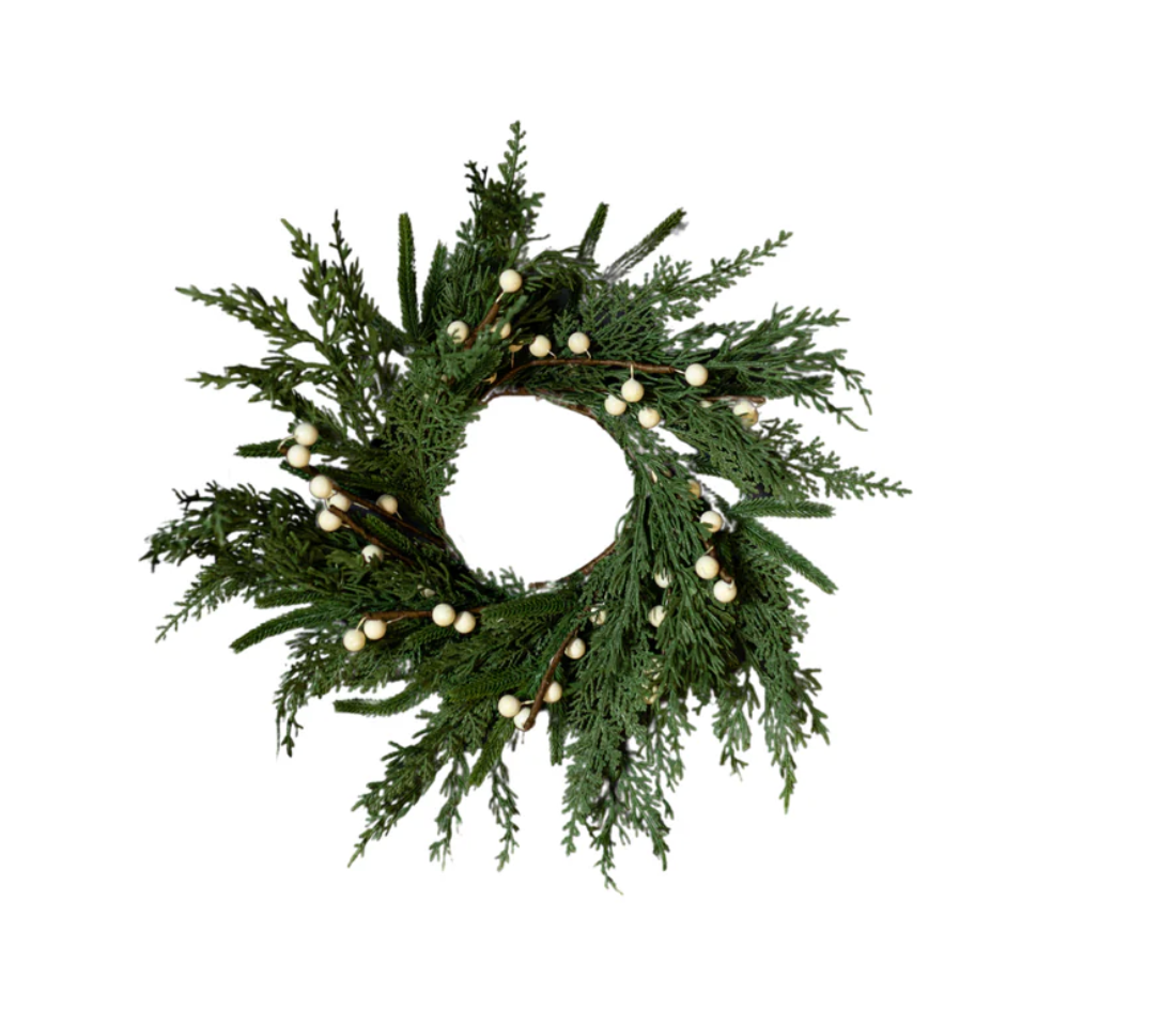 White Plum Berry Norfolk Cypress Real Touch Wreath